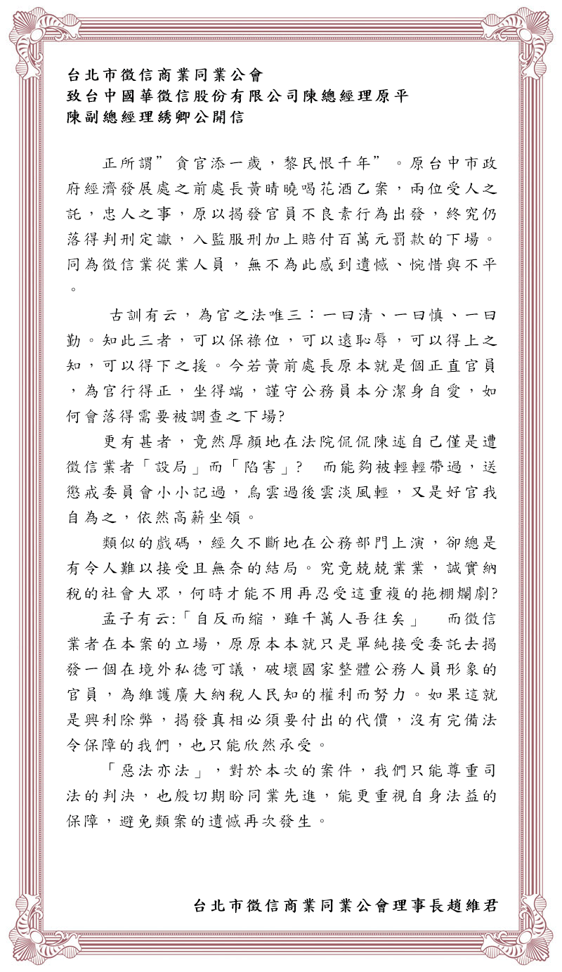 同業公會公開信